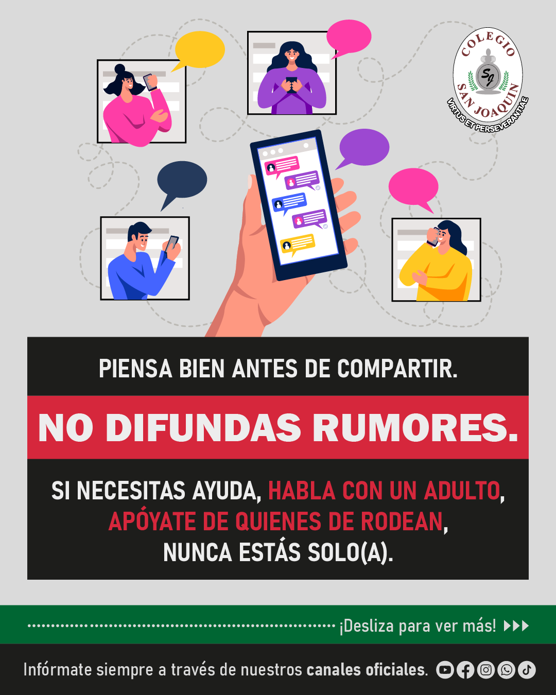 Fomentamos el diálogo, la confianza y el uso responsable de la información, invitando a nuestros estudiantes a actuar con criterio, empatía y compromiso.